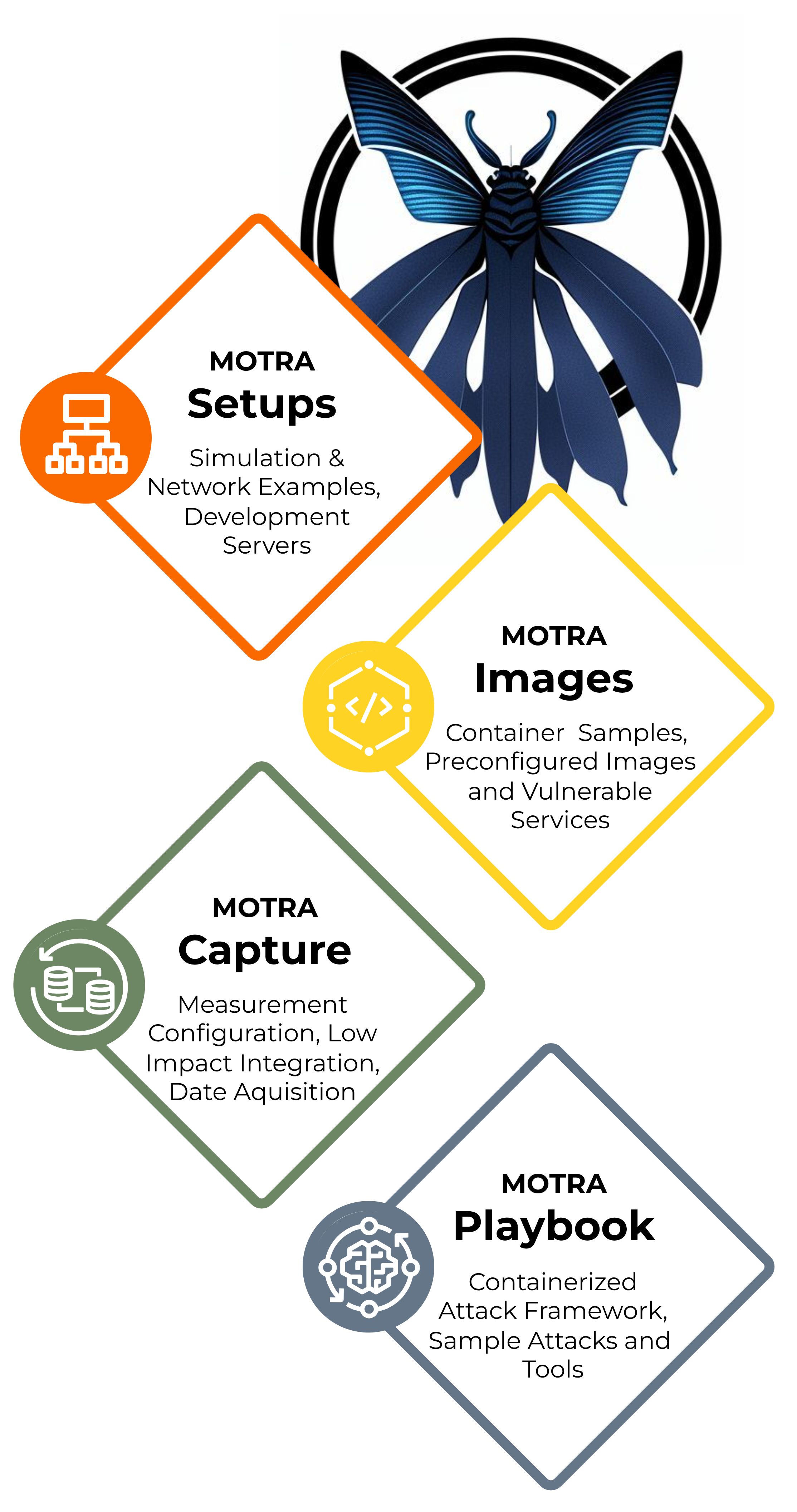 Our tools for attacking different systems, monitoring/capturing data, and modeling different types of interactions in our testbed are MOTRA Playbook and MOTRA Capture. With our open-source simulation modules, these tools are designed to enable non-invasive measurements and produce repeatable interactions. In addition to a testbed environment, we created and released our framework to offer security research specific attack and measurement setups. Our containers, network setups, and interactions for data acquisition can be shared through custom configuration files, enabling reproducible results that can also be used in other domains.