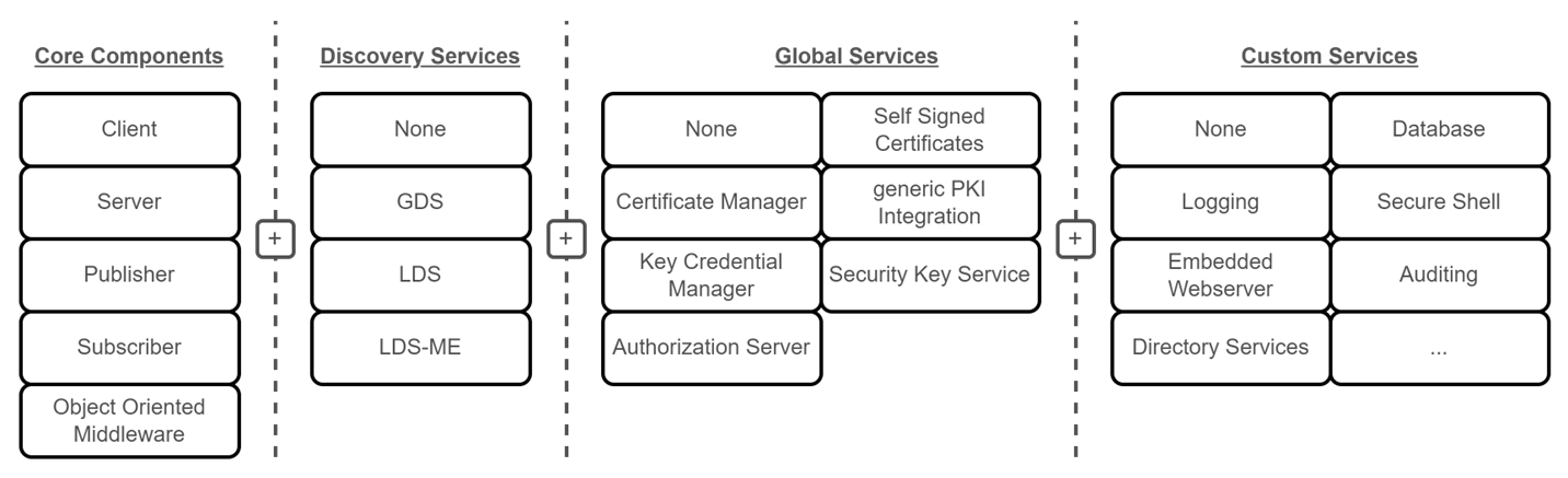OPC UA covers different types of services (in standard wording: the service model) and customizable object and information models. These can be used to interface applications and build highly complex information structures for sharing and transforming application data from all sorts of data sources. In addition recent changes added complex management functions for the different discovery server options, allowing OPC UA to integrate certificate management into more recent deployments. This allows the already existing security architecture to cover even more applications and integrations.